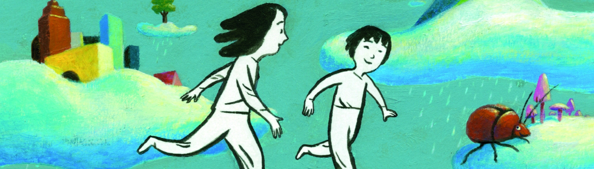 Ein Ball, ein Stuhl, ein Eimer – mehr braucht es nicht. Zwei Kinder denken sich ihre eigene Welt: Der Eimer wird zum Brunnen, das Zimmer zur Höhle, der Stuhl zum Berg. Schwarzweiß und bunt wechseln sich ab, und aus Langeweile wird ein Abenteuer.