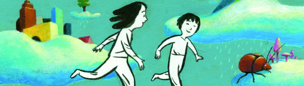Ein Ball, ein Stuhl, ein Eimer – mehr braucht es nicht. Zwei Kinder denken sich ihre eigene Welt: Der Eimer wird zum Brunnen, das Zimmer zur Höhle, der Stuhl zum Berg. Schwarzweiß und bunt wechseln sich ab, und aus Langeweile wird ein Abenteuer. Jens Rassmus liest und zeigt, wie ein Regentag voller Fantasie steckt – […]